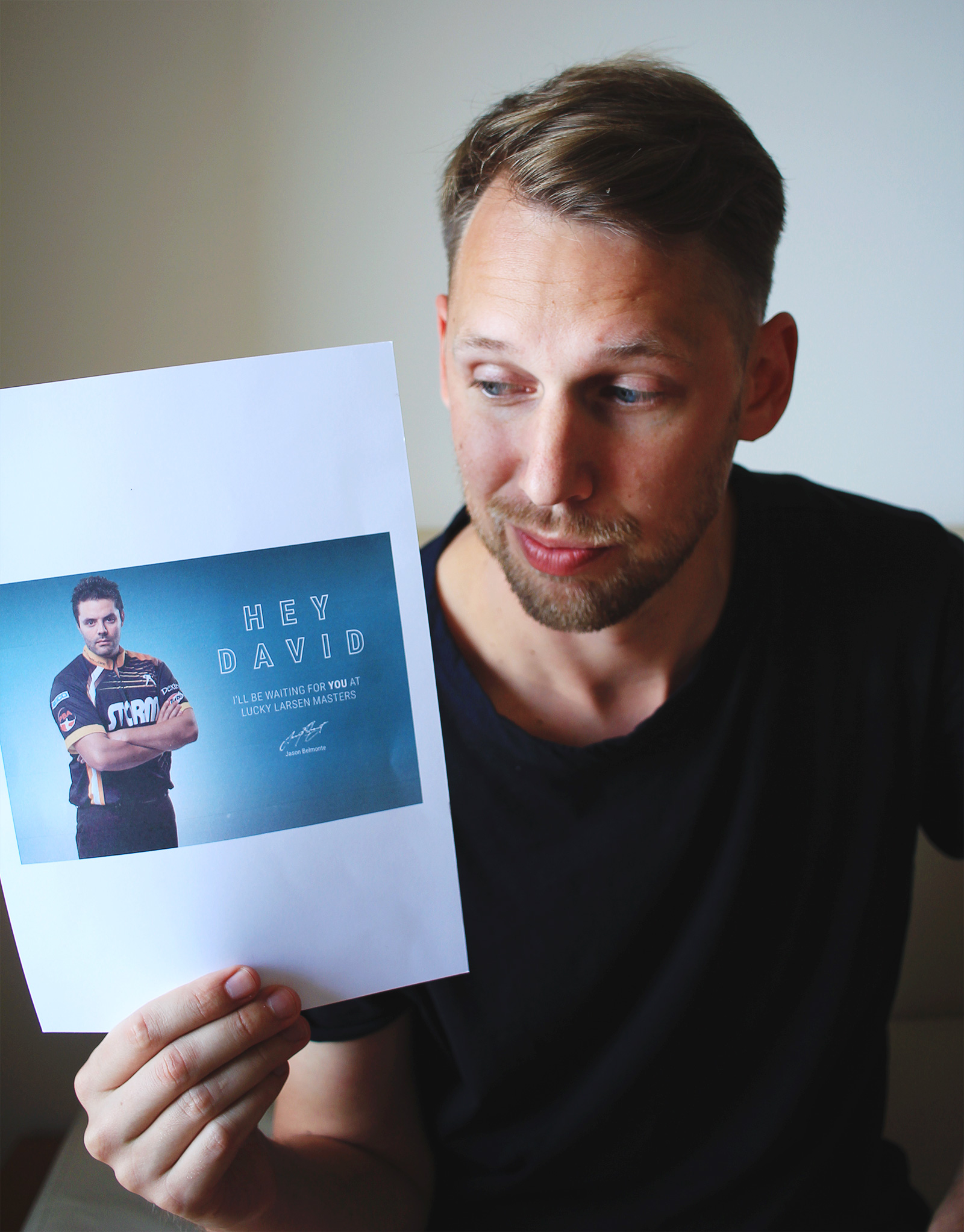 Och titta vad som väntade på hotellrummet till mr David – en hälsning från självaste idolen Jason Belmonte!