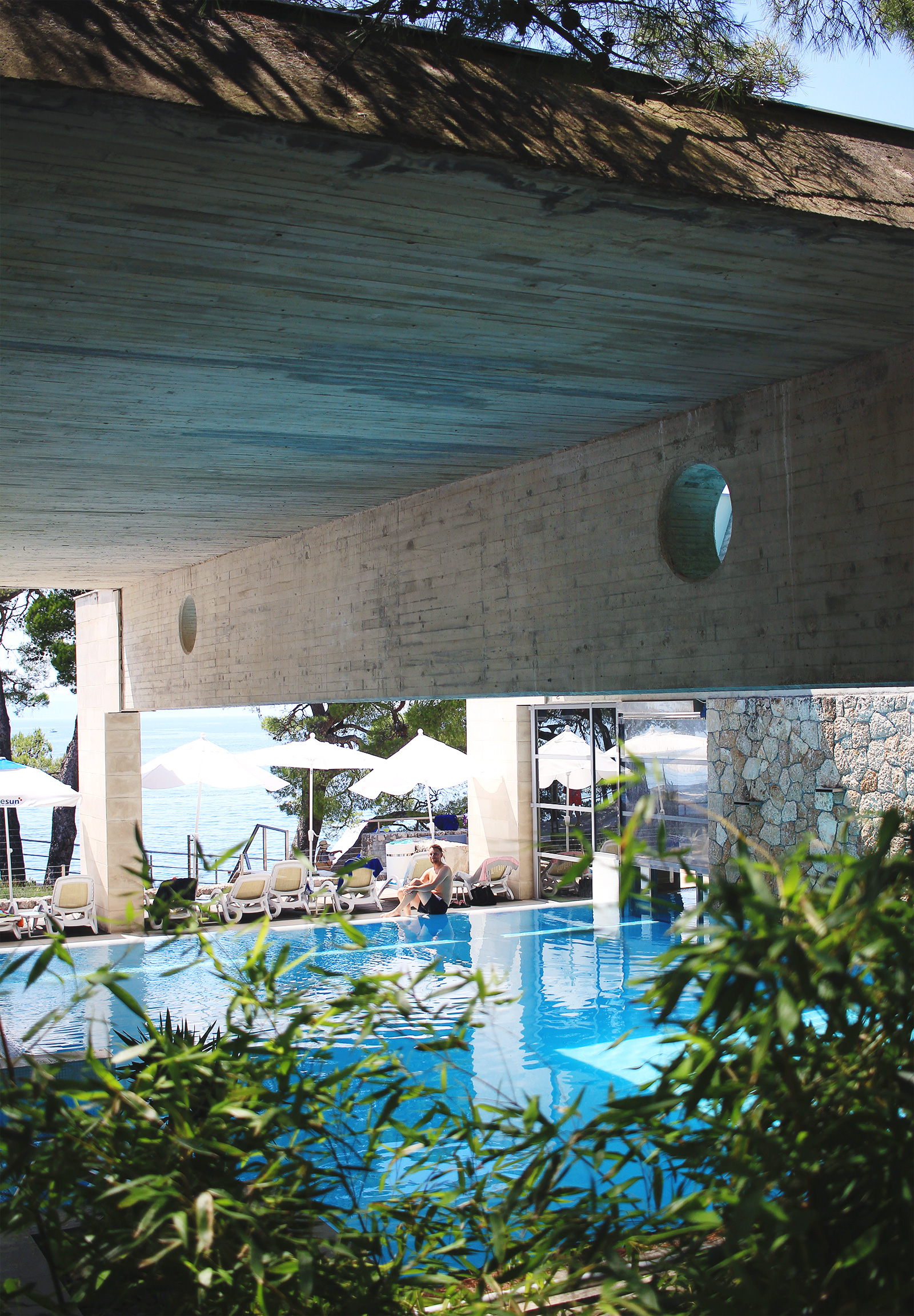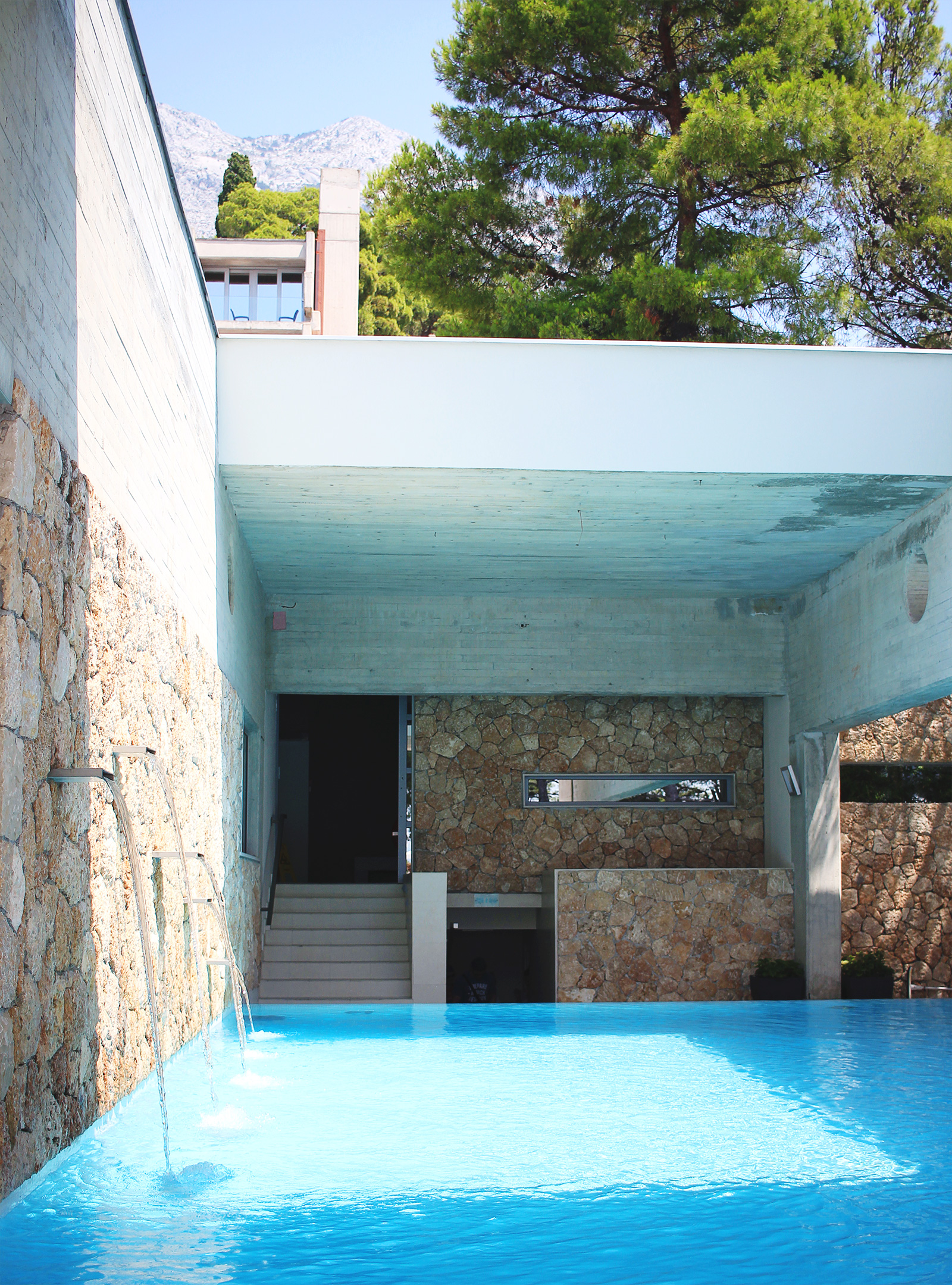 Och jag gillade hotellet, avskalat och lite rought i sin omålade betong. Och som ramades in fint med de grönskande pinjeträden.