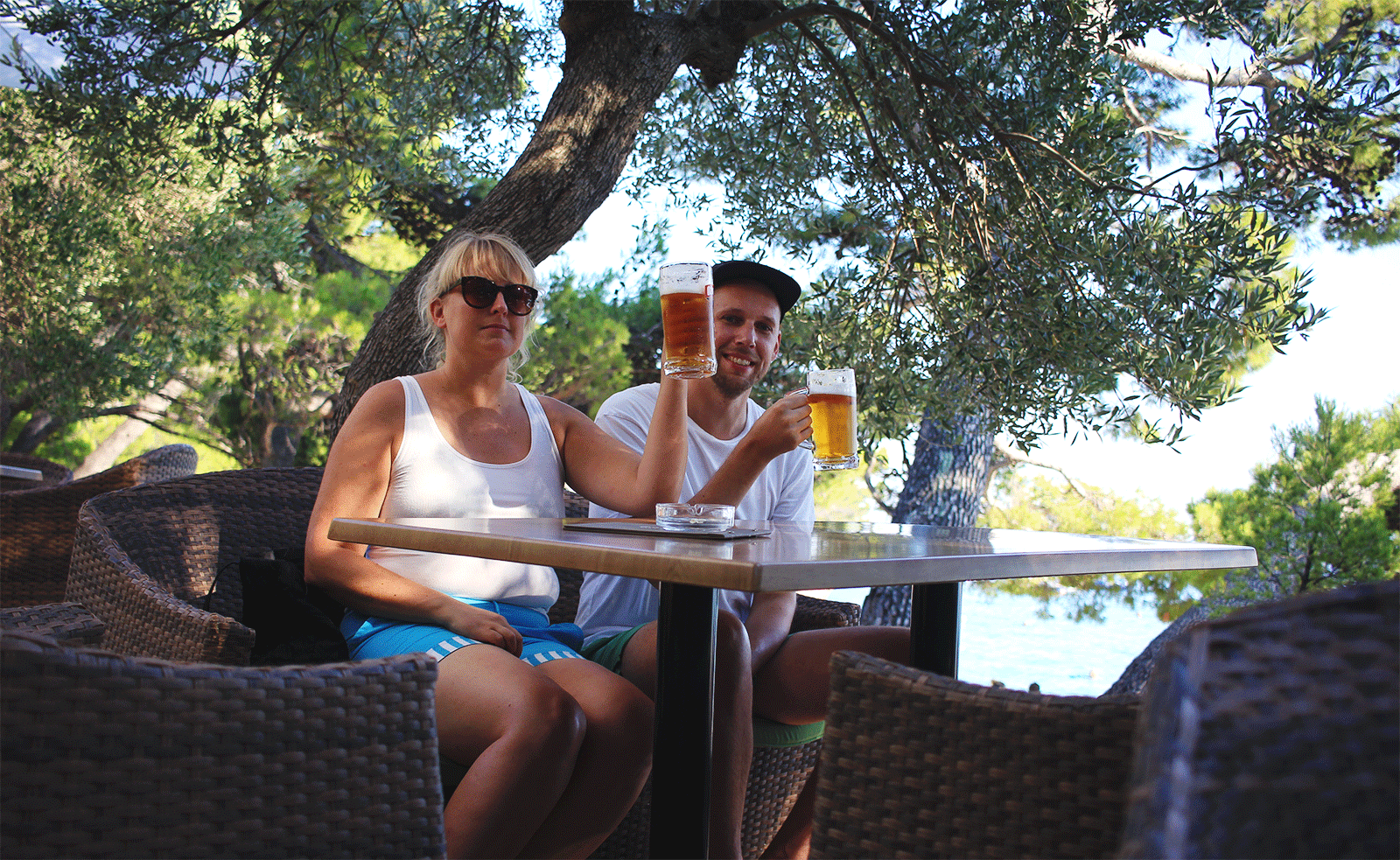 Klassisk turistbild; öl i näven i väntan på pizza