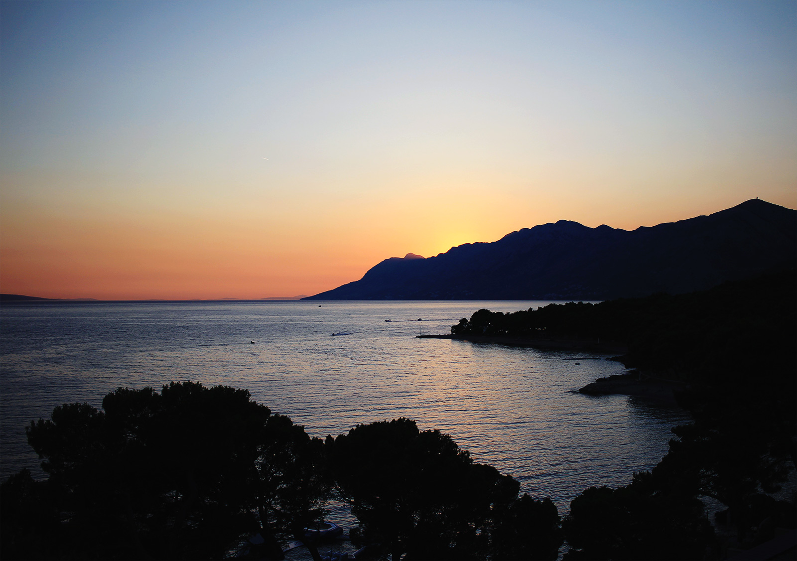 Kvällen avslutades på balkongen där vi avnjöt en god solnedgång bakom Biokovobergen.