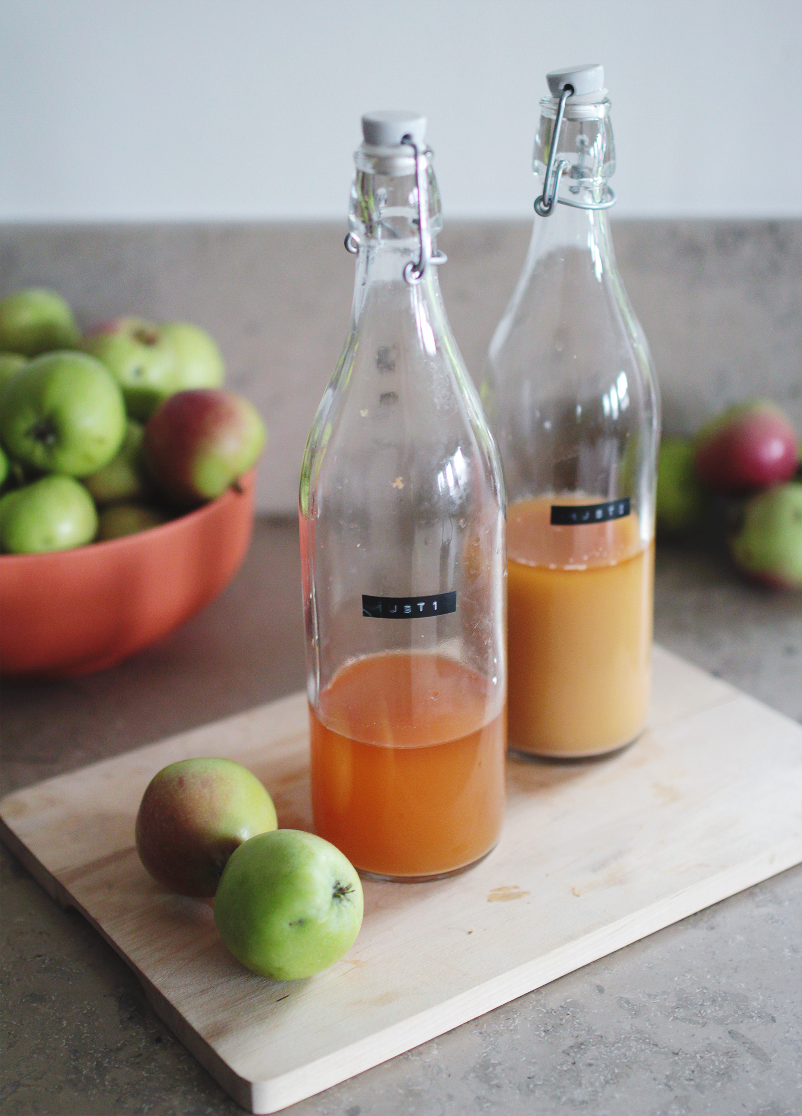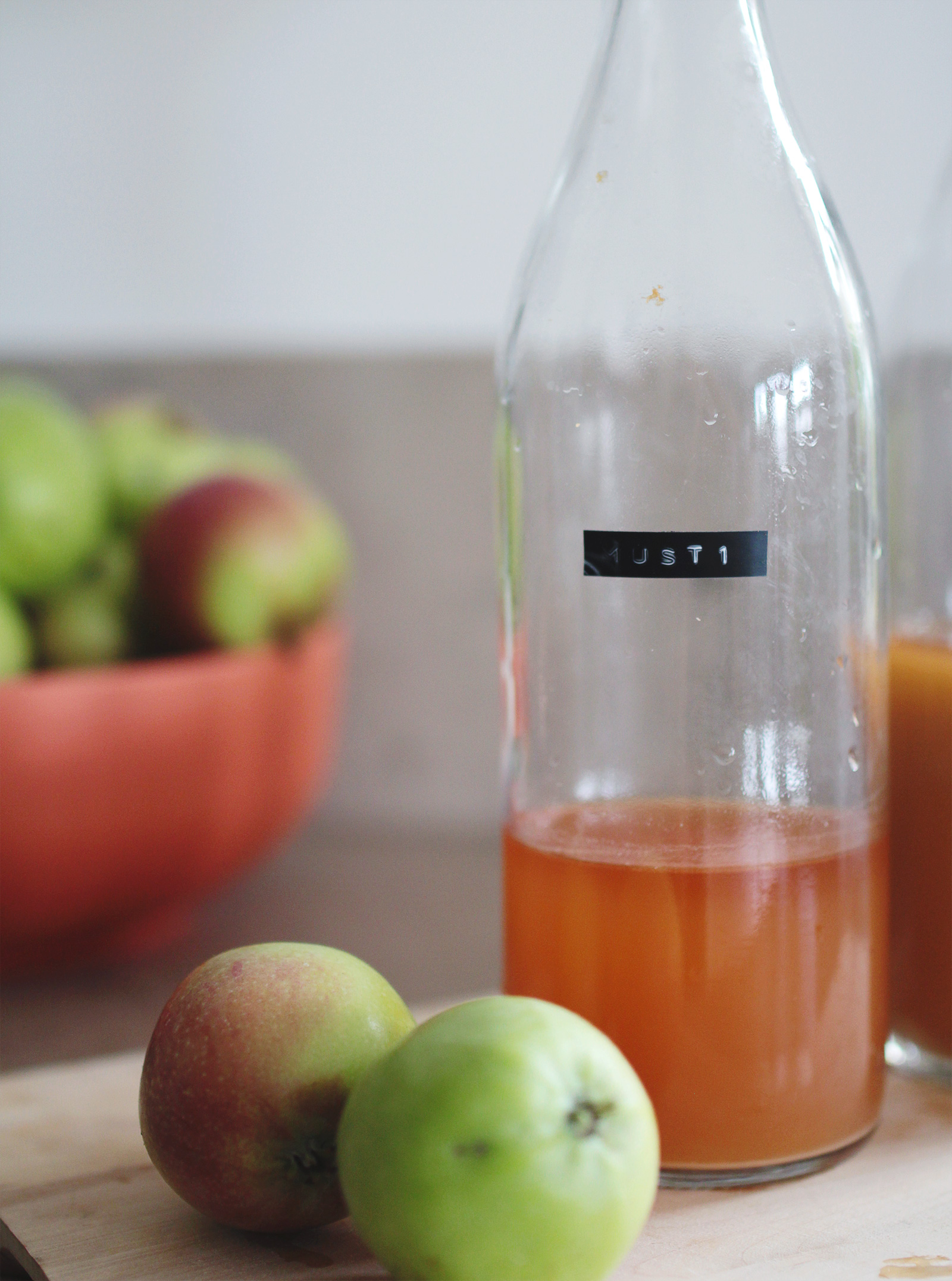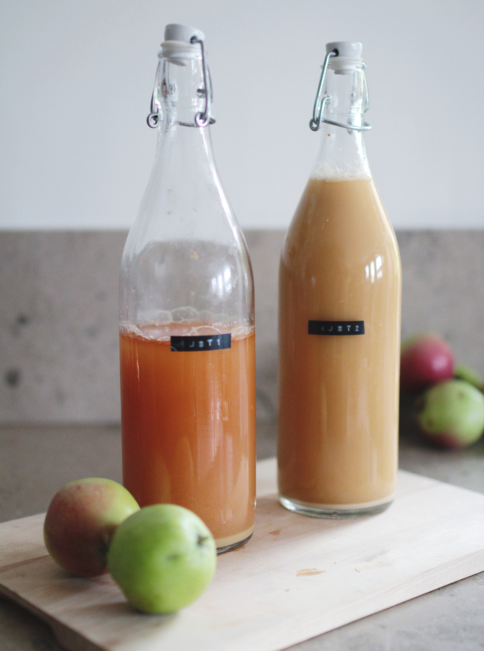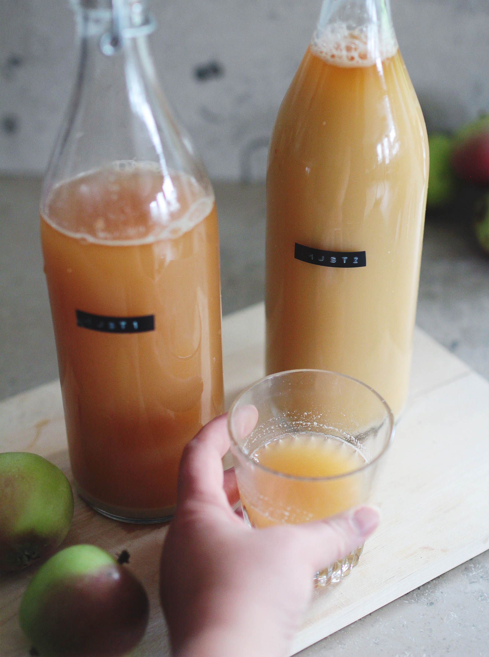 I den första flaskan – Must 1 – hade jag äpplejosen som kom direkt från råsaftcentrifugen.