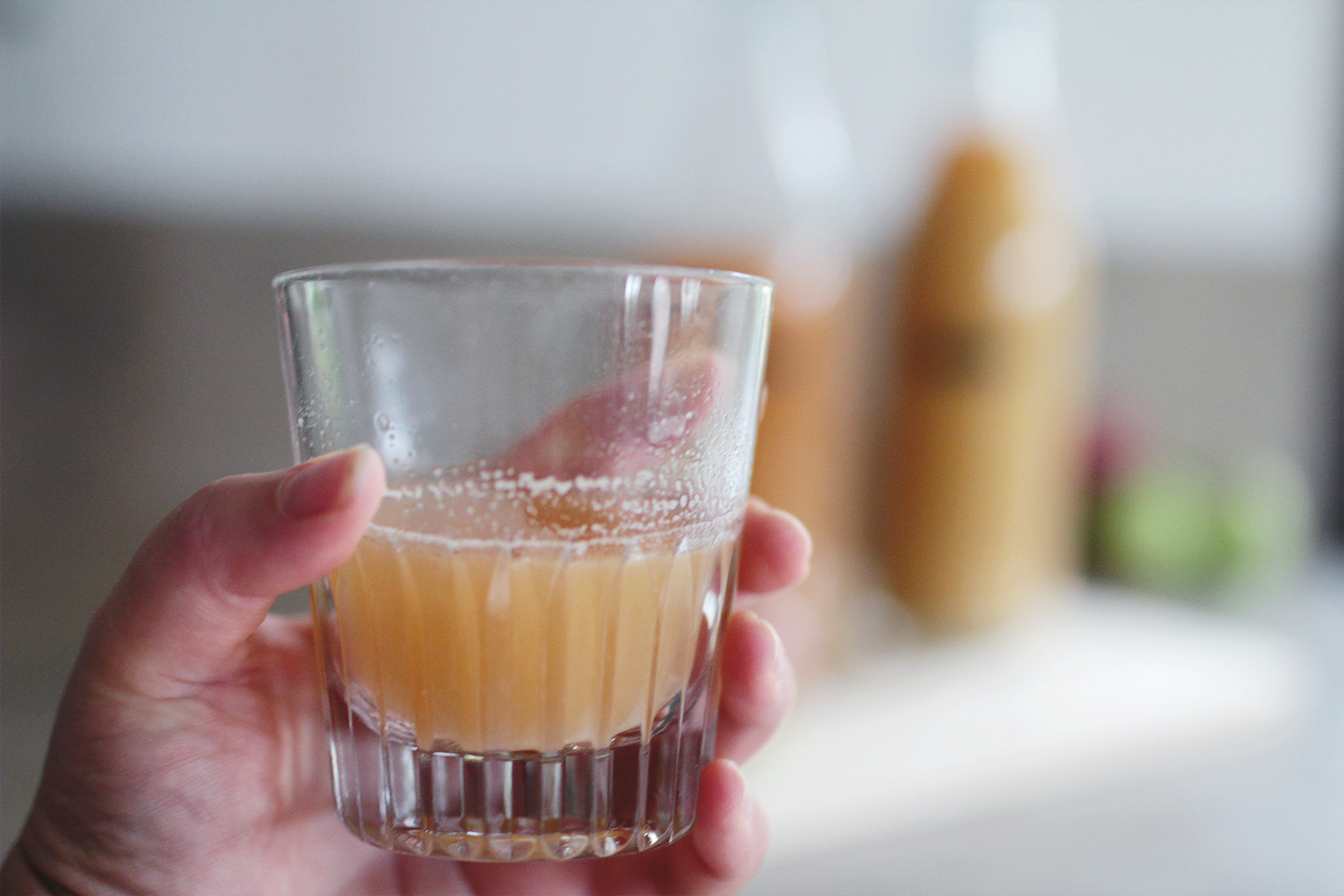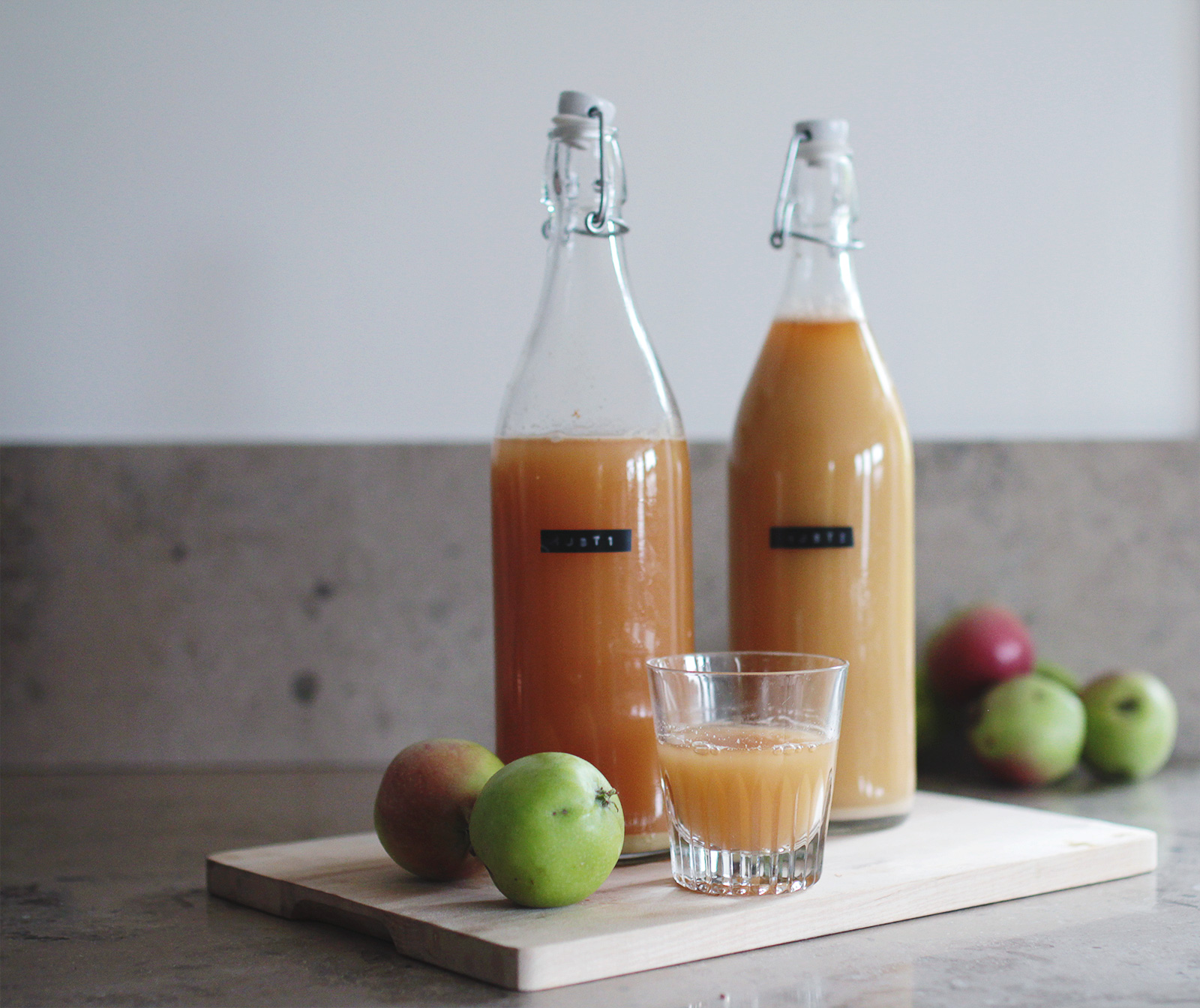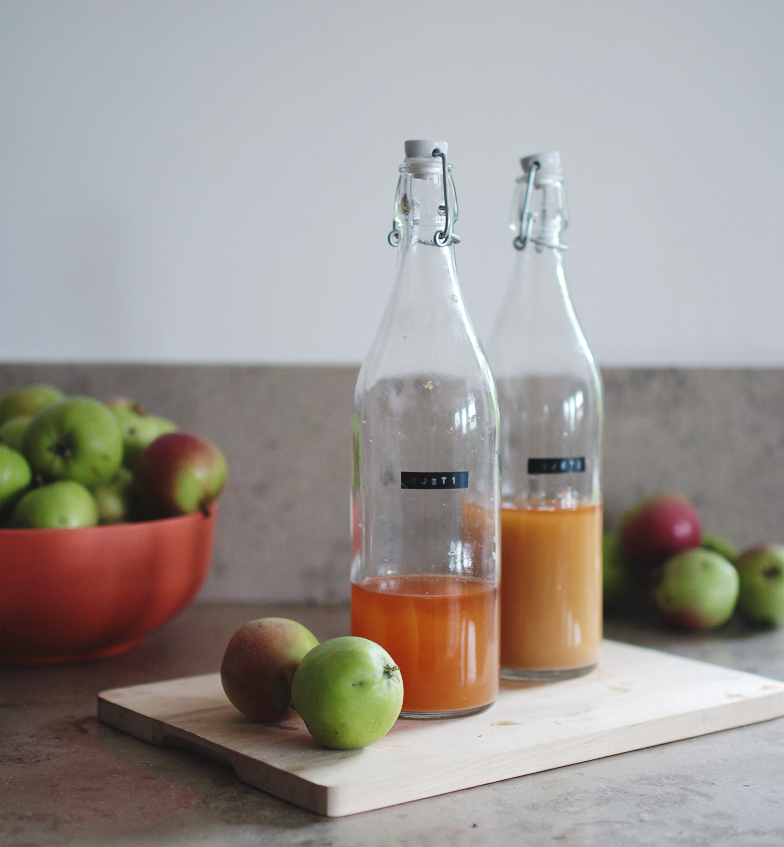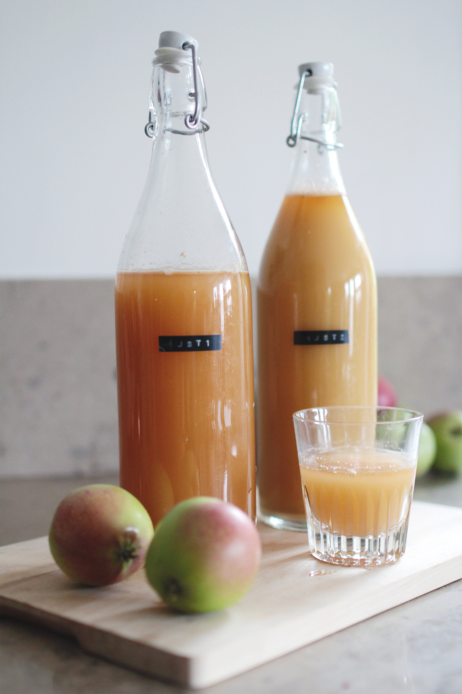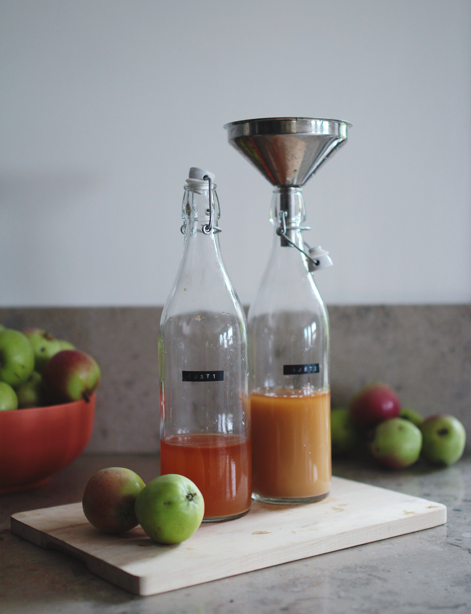 I den första flaskan – Must 1 – hade jag äpplejosen som kom direkt från råsaftcentrifugen.