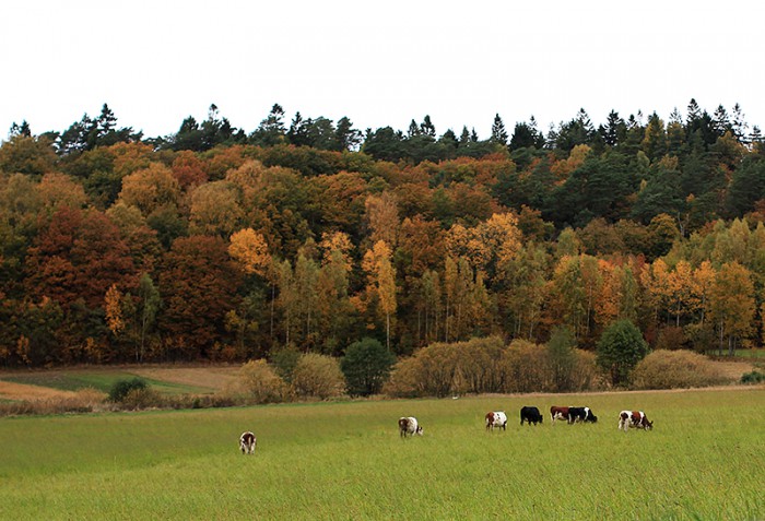 Åkte mot stallet, genom dalen, förbi betande kossor och en skog som stod i höstbrand. Alltså alla färger. Jag dör så fint.