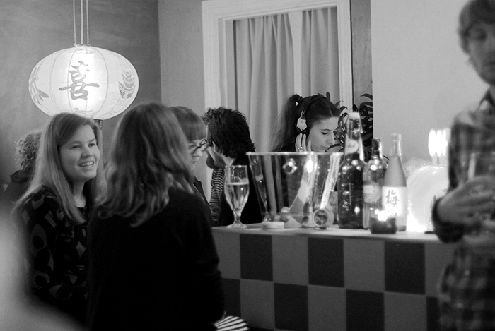 Vi skålade med risvin.