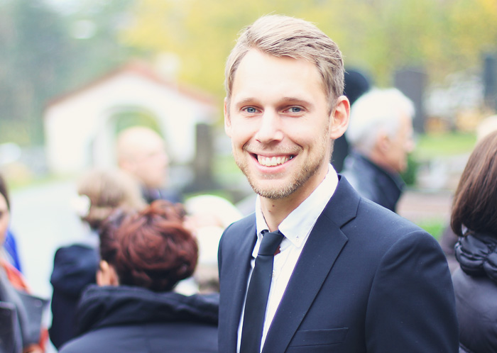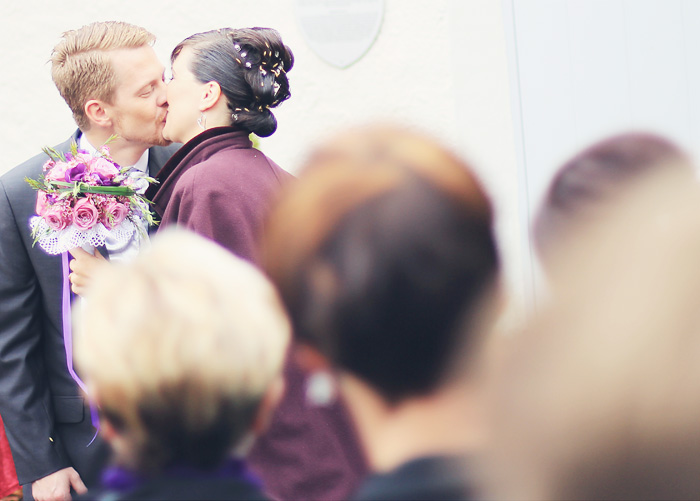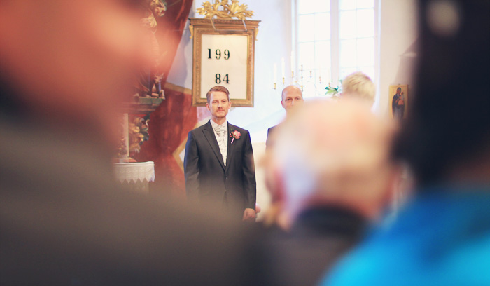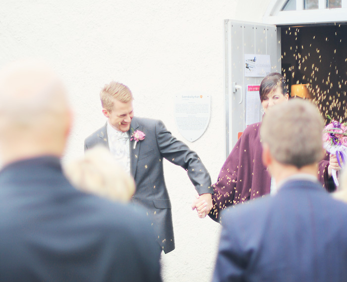 Efter vigseln väntade vi på att brudparet skulle komma ut. David var riktigt stilig!