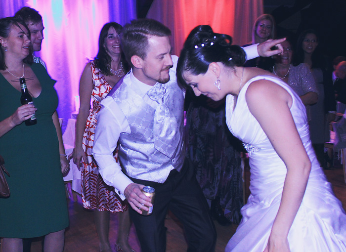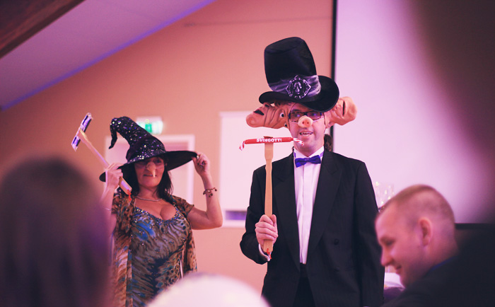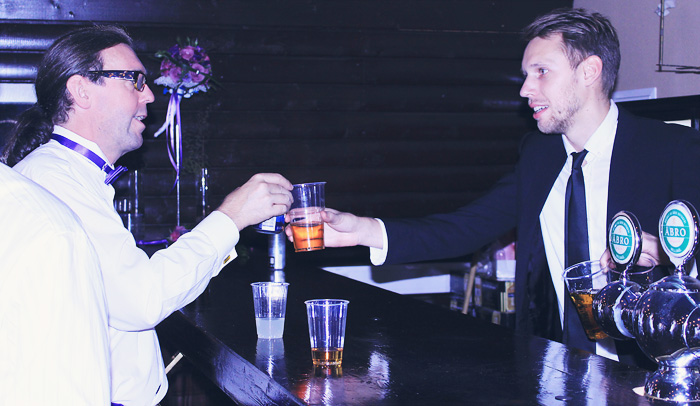 Som vi sedan smällde för att bringa lycka för brudparet – allt enligt direktiv från dessa två ”trollkarlar”.