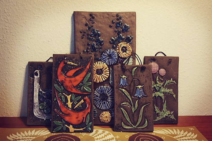 Dagens loppisrunda gav bra utdelning. Tyvärr inga tallrikar. Men…hittade en lertavla som jag bara var tvungen att köpa. Får eventuellt byta ut en av de som redan sitter uppe. Har ju några stycken (se ovan, där inte ens alla är med – ugglorna t ex). Och jag köpte en glasuggla. ops. Samt krukor. Vaser. Ramar. Och ett par jättefina skor som var liiite för stora, men jag var bara tvungen att ha dem! Bilder kommer en annan dag, nu ska vi iväg på 30-års fest! Hoppas alla får en finfin kväll!