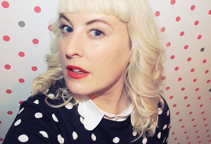 Bakom lucka 14 i Emily Dahls julkalender finner ni mig, fast för ett år sedan. Då bar jag löskragen från COS väldigt ofta. Och så hade jag lugg. Och rätt ofta rosett av diverse storlekar i håret. Det röda läppstiftet smetades även på titt som tätt.