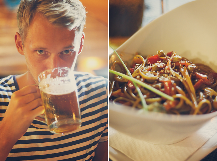 Vi möttes av regn. Inspekterade hotellet. Åt lunch. Solen kom fram. Vi badade. Samt firade att vi varit ihop i ett och ett halvt år. Skål!