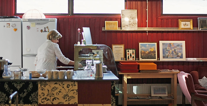 På Hjulet kan man även fika. Bland tavlor och gamla människor.