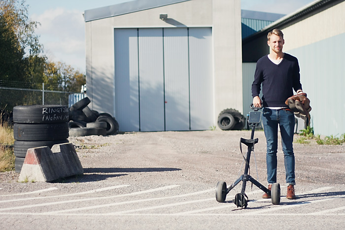 David och sin ”nya” golfvagn.