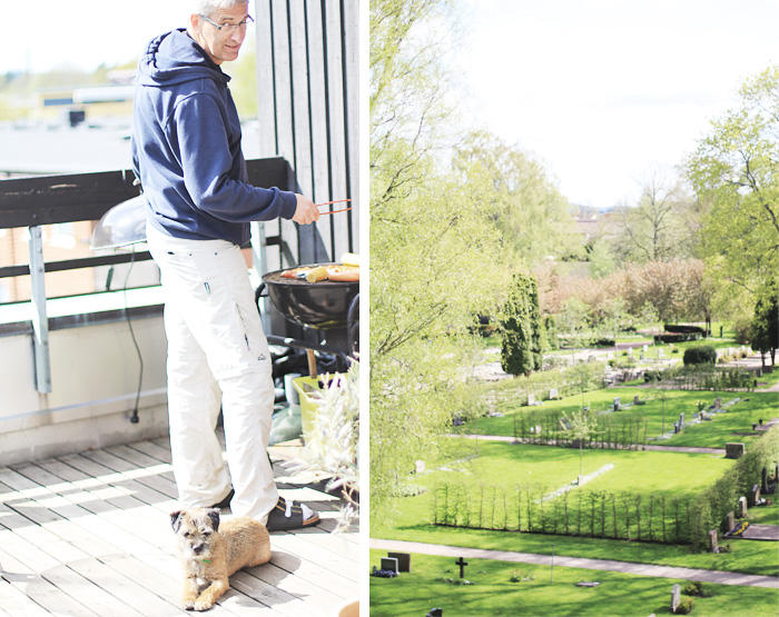 Där vankades det söndagsmiddag i form av grillat. Och från balkongen kan man se syrrans grav. Skönt att ha henne nära.