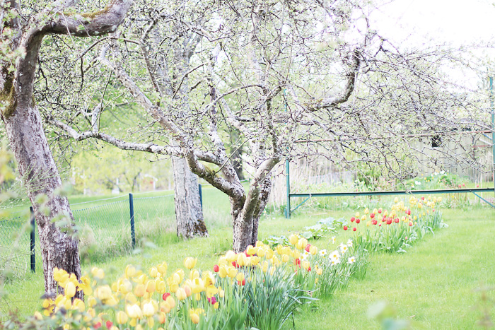 Drömsketrädgården med tulpaner i mängder och krokiga, klättervänliga träd.